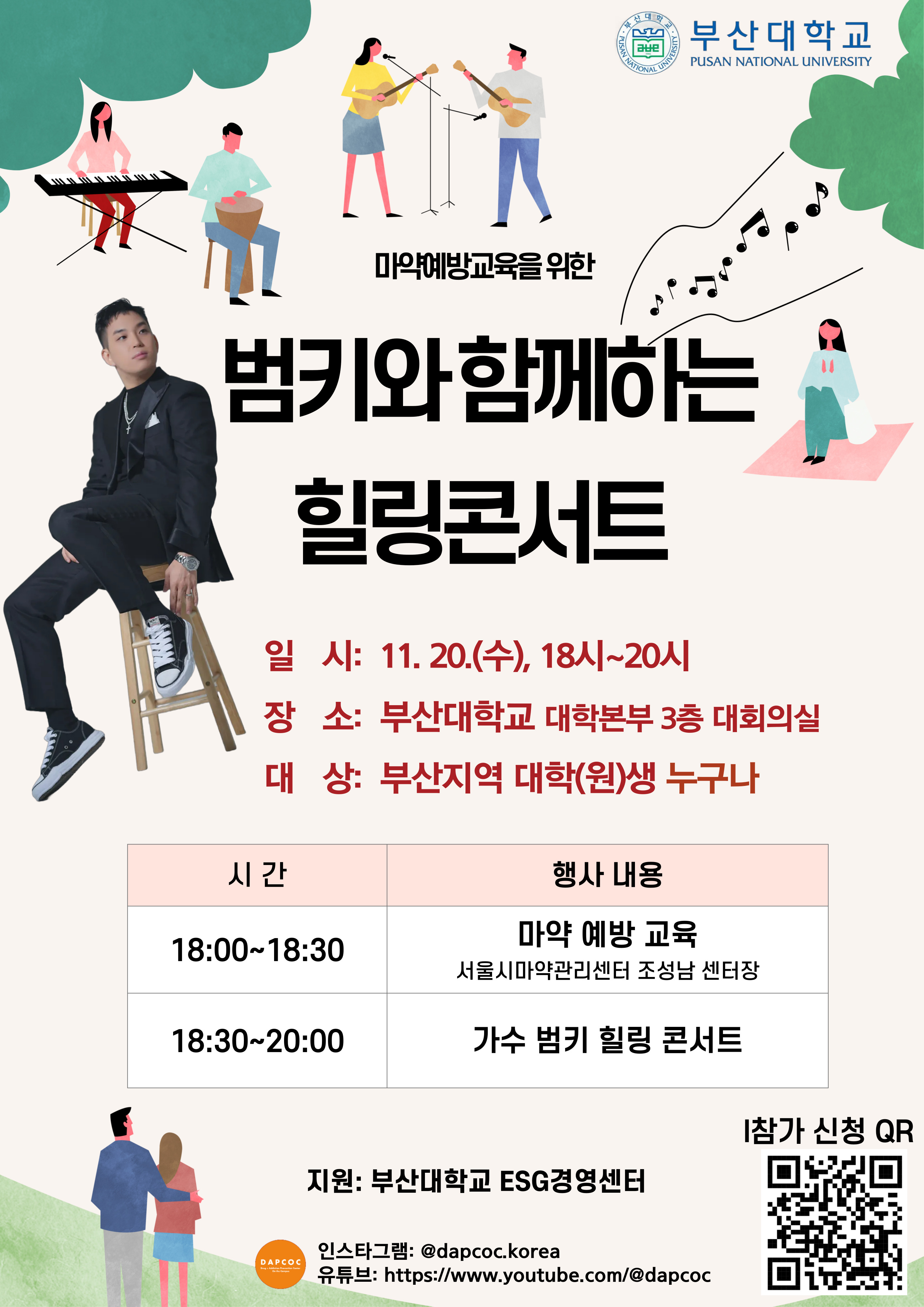 대학 캠퍼스 내 건강하고 건전한 문화 형성을 위해 「DAPCOC 부산대 마약예방교육」2차 세미나가 있을 예정이니 많은 학생들의 참여 바랍니다.